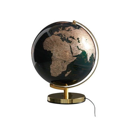 Flot og eksklusiv globuslampe i grøn og messing, som vil give dig et tydeligt billede af alverdens lande. En elegant indretnings-detalje til børneværelse og bolig. Globuslampen har indbygget LED-lys, som giver lang og effektiv levetid. Måler Ø: 30 cm. Ledningslængde på 150 cm.