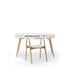 Med i dette sæt følger der Wood armstol, som passer til skrivebord i begge højder. Wood armstol kan justeres i to højder og passer til begge Wood skriveborde. Stolens rundede rygstykke og delikate samlinger, skaber en visuel lethed og et ubesværet udtryk i indretningen, mens detaljer som stellets let skrånende ben, er udtryk for den høje håndværksmæssige kvalitet. Den stabile stol, der er udført i hvidlakeret formspændt birk og hvidolieret egefiner, og er med sit på en gang enkle, og lidt nostalgiske design, skabt til at være afsæt for såvel gode samtaler som koncentreret alenetid for både store og små. Måler D:42 x B: 46,5 x H: 63,5 cm, justerbar siddehøjde 40 og 44 cm
