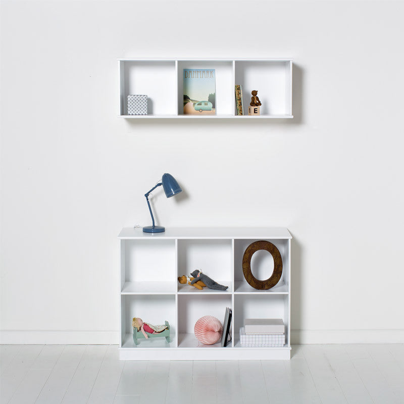Klassisk enkel reol i nordisk look fra danske Oliver Furniture. Reolen har 3 sektioner og 6 rum i alt, og passer perfekt ind i overalt i boligen, hvor man har brug for praktisk opbevaring. Reolen fås i model til montering på væggen eller med sokkel så den kan stå på gulvet. Vælg variant nedenfor. Reolen leveres samlet, og det er muligt at tilkøbe ekstra hylder eller special designet opbevaringskasser.