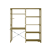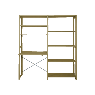 Modelfoto viser reol i højde på 179 cm og dybde 40 cm - bemærk at skrivebordspladen er 60 cm i dybden. Reolen leveres usamlet og som fladpakket.