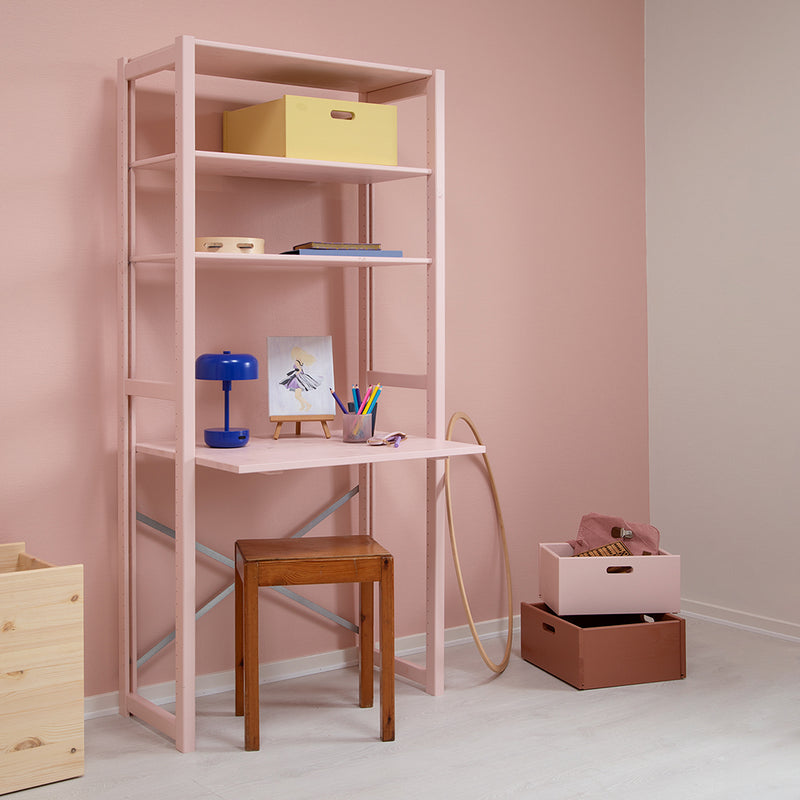 Flot, enkel og funktionel ABC stigereol fra danske By Aulum. Agger reolen som den kaldes, er skabt som et funktionelt møbel med et integreret skrivebord, som kan justeres i højde og hældning. Møblet er fremstillet af dansk fyrretræ der er overflademalet 1 gang. Dermed kan træets struktur ses og reolen fået et let rustikt look. Reolen måler 83 cm i bredden. Perfekt til børneværelset eller multirummet. Modellen på billedet er 179 cm i højden 40 cm i dybden. Bemærk dog at skrivebordspladen er 60 cm i dybden. Der følger som standard 3 hylder med modellen, men det er muligt at tilkøbe ekstra hylder eller Dana opbevaringskasser efter behov. Reolen leveres usamlet og som fladpakket. Bemærk: Reolen fås hhv med 30 cm eller 40 cm dybde og prisen varierer derefter. Vælg dybde: