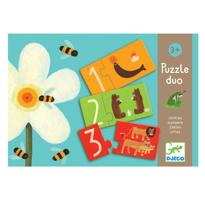 Hvert puslespil har 2 brikker med motiv af henholdsvis dyr og tal, som skal passe sammen. Puslespillet er velegnet til de lidt mindre børn, der skal lære at tælle og genkende tal.