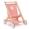 Dukkeklapvogn i træ med 4 gummibeklædte og skridsikre hjul. Passer til de fleste babydukker. Skal samles, montering nødvendig. Produkt mål: 49,5 x 33 x 40,5 cm