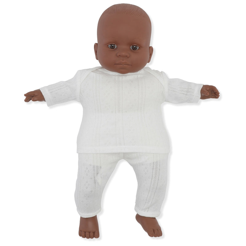 Yndig dukke fra Konges Sløjd, med hoved, hænder og fødder i vinyl. En sød dukke der er velegnet til børn fra 1 år. Tåler vask på 30 grader.