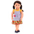 Mona er en af de fine dukker fra Our Generation, som elsker at bage. Når hun går i køkkenet bliver der rørt, æltet og dekoreret de fineste brød og kager. Til dukken medfølger der: Gul bluse med krave, fin blomstret kjole, blåt forklæde, sko og et bundt med måleskeer.