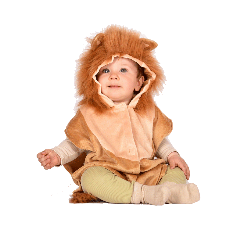 Skøn lille kappe som løve til leg og udklædning. Kappen har påsyet hætte hvor på der er små øre og den blødeste pelsmanke. Ligeledes er der hale nederst med blød halespids. Kappen lukkes foran med velcro og har elastikker i siderne. Fås i str. 1-4 år ( 86-110 cm)