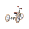 Sej trehjulet løbecykel fra Trybike der på ingen tid kan ombygges til en løbecykel i takt med barnets udvikling. Trybike er hollandsk virksomhed med mange års erfaring i salg af løbecykler, og nu også med det at designe. Denne trehjulet løbecykel er i  retro-look m. lyse hjul og brun saddel og greb. Den er god til et mindre barn, der skal til at træne balance og fornemmelsen for egen krop. Her kan barnet trygt komme i gang med livet som cyklist uden fare for at vælte i forsøget. Når barnet så har fundet balancen, kan cyklen let laves om til en tohjulet en af slagsen – uden der er behov for ekstra dele.