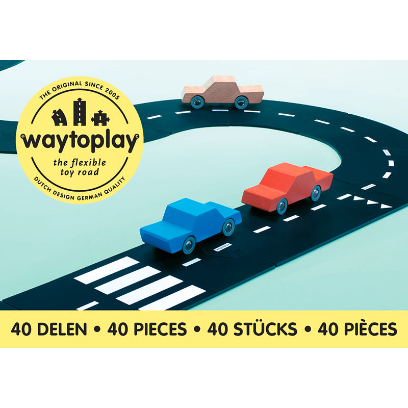 Waytoplay er sjovt og fantasifuldt legetøj der stimulerer kreativitet og indbyder til rolleleg. Med Waytoplay bilbane kan barnet selv bestemme sin rute i et fantasifuldt univers, hvor flere børn kan deltage på samme tid. Vejbanen er vandtæt og kan bruges både indenfor eller udendørs, hvad enten det er i græsset, på stranden eller i sandkassen. Bilbanen kan sagtens udbygges med andre sæt fra Waytoplay.