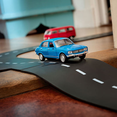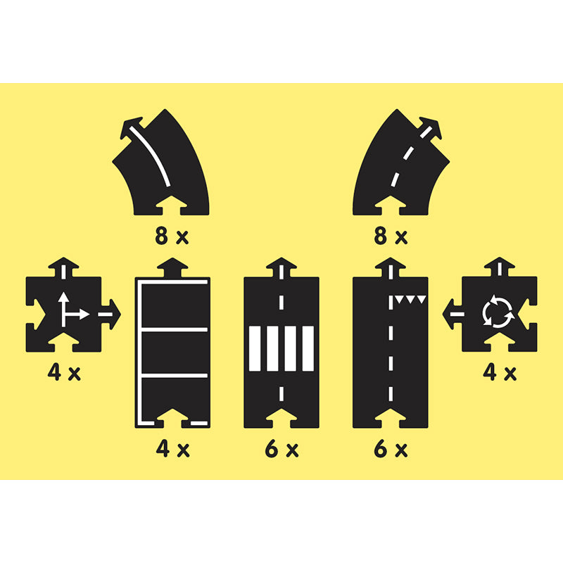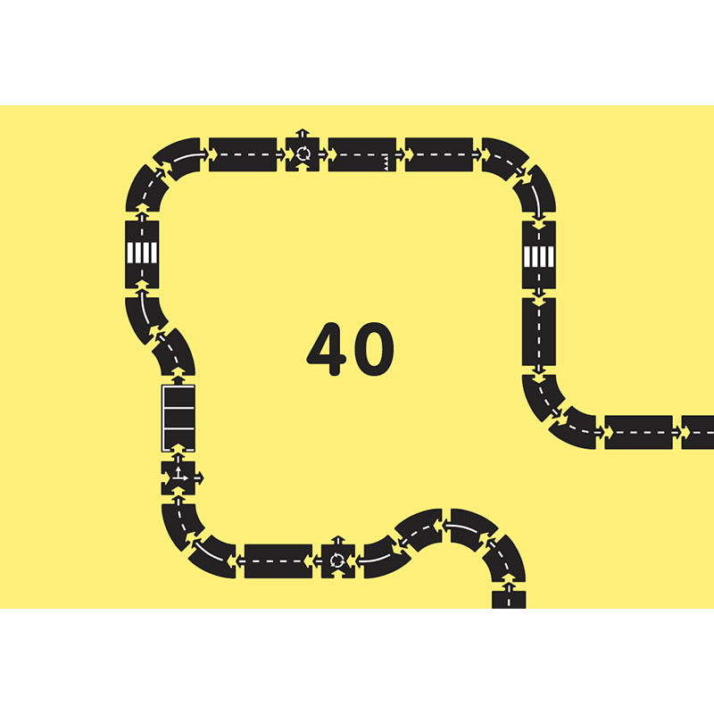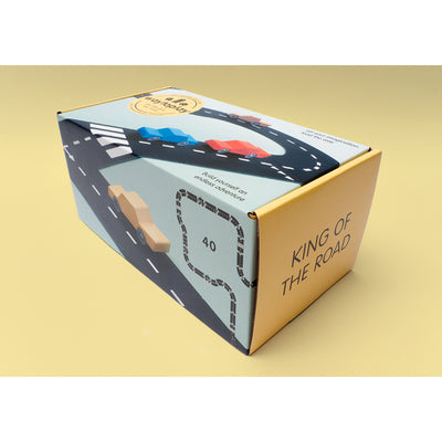 King of the road er den ultimative bilbane fra Waytoplay, til børn som elsker leg med biler. Byg en vej med buede sving. Kør over dørtrin og ud i haven. Mulighederne er mange og kun fantasien sætter grænser. Sættet indeholder 40 fleksible og slidstærke vejelementer i gummi, som kan sættes sammen til en sej bilbane. Sættet består både af sving, lige baner, fodgænger felt, rundkørsel og vejbaner med hajtænder.