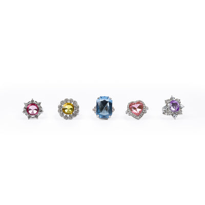 5 super fine ringe fra Great Pretenders til leg og udklædning. Hvad enten man drømmer om at være prinsesse eller fotomodel, er tilbehør en vigtig ting for at fuldende looket. Leveres i æske med gennemsigtigt låg, som gør det til en særlig fin gaveide. Fra 3 år.