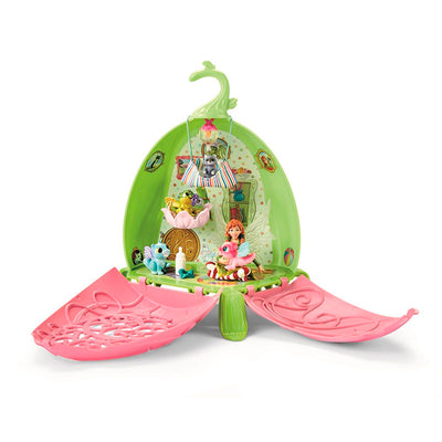 Flot og eventyrligt dyrebørnehave fra Schleich fra serien Bayala. Serien er fyldt med alfer, enhjørninge, blomster og magisk elverfolk. I denne smukke dyrebørnehave er det den frække sol-alf Marween, der med sine særlige evner, kan tale med dyrene, alt i mens hun leger med drageungerne og den lille kat m. vinger. Dyrebørnehaven er designet inde i en blomst som kan klappes sammen og tages med på tur. En fantastisk sæt til timevis af leg. Fra 3 år.