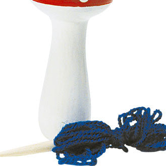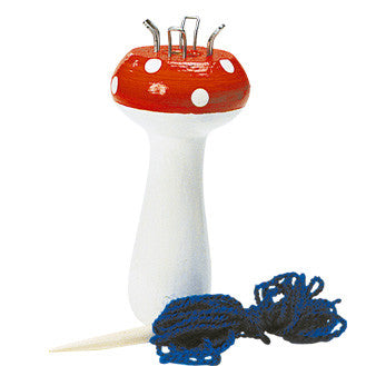 Ren nostalgi... Med denne strikkelise kan der bl.a. laves halstørklæder til dukkerne osv.Nål i træ og en smule garn medfølger også.