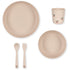 Fint spisesæt fra Konges Sløjd fremstillet i PLA/bioplast som er nedbrydelig. Sættet består af tallerken, skål, kop, ske og gaffel, med sød illustration fra Konges Sløjds fantastisk univers. Flot gaveide der leveres i gaveæske.