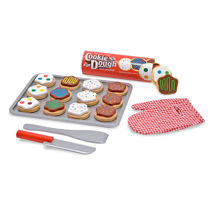 Kagesæt i træ fra Melissa & Doug. Sættet består af 12 kager, 12 farverige "toppings med glasur", kniv, spartel og grill-handske i rød og hvidternet bomuld.Til sættet hører også en bageplade og kagedåse, i alt 29 dele. Kagerne sættes sammen med velcro, og børnene vil synes det er sjovt at bage og skære kagerne over. En oplagt gaveidé som uden tvivl vil give mange gode legetimer. Anbefalet fra 3 år. Melissa & Doug er et amerikansk mærke som især er kendt for deres trælegetøj og deres puslespil af høj kvalitet.