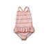 Bliv klar til sommer og sol med UV badetøj fra Liewood. Denne badedragt er med UV-50+ beskyttelse, der blokerer mod solens farlige stråler, og er i strækbar Oeko-Tex kvalitet med fine striber og flæser. Badedragten er testet og bestået ved en klorin-test, som betyder, at badetøjet ikke falmer ved kontakt med klorholdigt vand. Er fremstillet af 80% nylon og 20% spandex. Oeko-Tex klasse 1 certificeret. Tåler vask v. 30 grader.