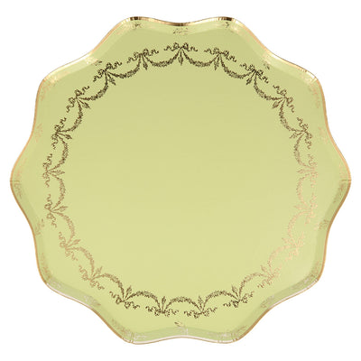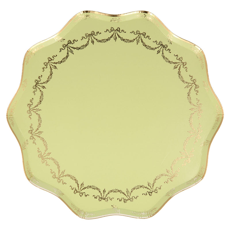 Meri Meri paptallerken, Ladurée Paris, 8 stk. str L - Gul med guldfarvet mønster