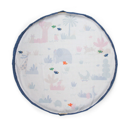 Tæppet kan pakkes sammen til en praktisk opbevaringstaske til at tage med overalt på farten. Træk blot i den justerbare rem for at folde legetæppet sammen.