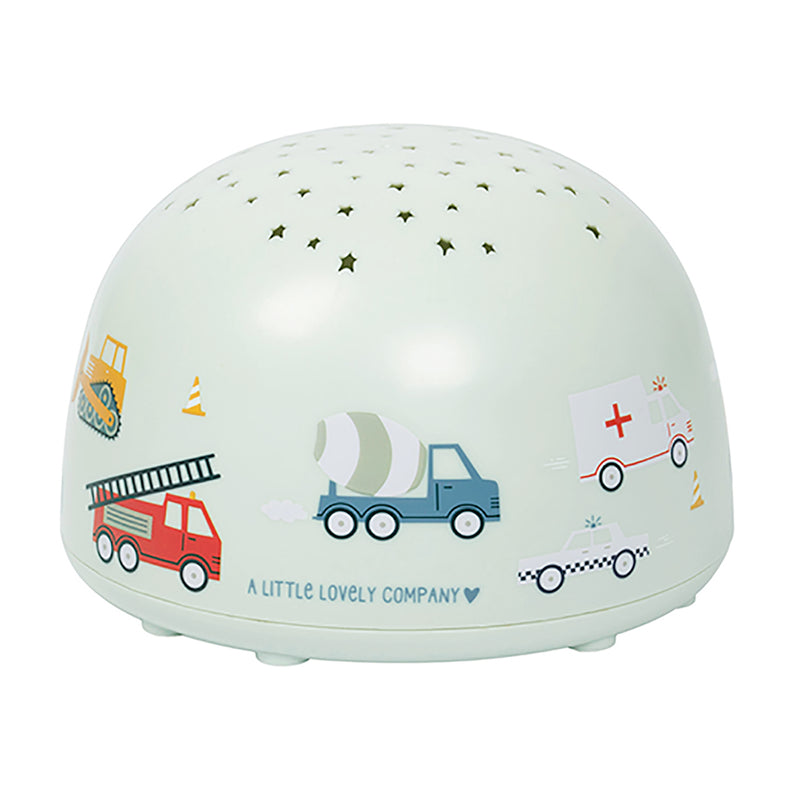 Denne unikke lampe med søde motiver af køretøjer fra A Little Lovely Company projicerer stjerner på loftet i barnets soveværelse. Du kan nemt skifte mellem forskellige stjernefarver med et tryk på en knap: regnbue, orange, grøn eller blå. Den automatiske timer slukker projektorlampen efter 30 minutter, så den lille kan falde i søvn under en glimtende stjernehimmel! Fra 3 år.