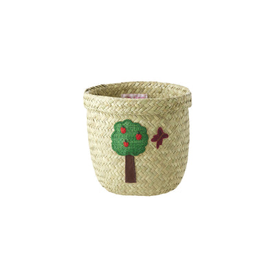 Denne fine lille, runde kurv er håndbroderet med et frodigt æbletræ og en sød fugl. Det er en sød, men praktisk tilføjelse til ethvert hjem. Uanset om du opbevarer legetøj, nips, eller nøgler, tilføjer den et pop af farve og en sjov detalje... og den er endda lavet af det miljøvenlige materiale raffia! Måler H: 15 x Ø: 15 cm.