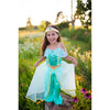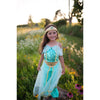 Orientalsk inspireret prinsesseudklædning fra Great Pretenders til leg og udklædning. Dragten er turkisgrøn, med guld og pailletdetaljer på bærestykket, med flere lag som giver et rigtig fint og let udtryk. Fås i str. US 3-4 år og US 5-6 år. Vælg str. ved bestilling