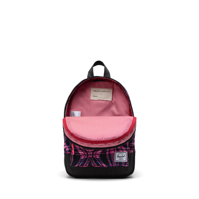 Rygsækken er foret med Herschels velkendte signaturstof, med røde/hvide striber, og har vatterede stropper og brystrem, som kan justeres så rygsækken sidder godt på barnet. 15 liters rumfang.
