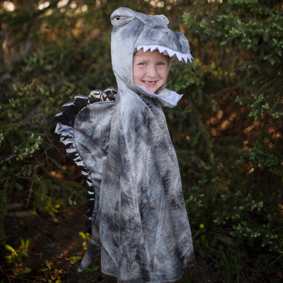 Sej kappe fra Great Pretenders udformet som Grandasaurus spinosaurus dinosaur. Kappen er nem at tage af og på, da der er velcro-lukning v. halsen, og ned langs ryggen og til hallen er der flotte takkede detaljer. Fås i str. 4-6 år.