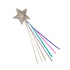 Spred magisk støv med denne fine tryllestav med en stor, glitrende stjerne på toppen og en hale af 6 farverige satinbånd. Stjernen er placeret sikkert på en pind, betrukket med satinbånd.