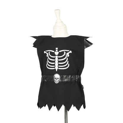 Sort pirat tunika med takket kant og print at knogler og kranie fra Souza. Oplagt til leg og udklædning ikke mindst til halloween. Fås i str. 3-4 år ( 98-104 cm) og str. 5-7 år.  Vælg str.