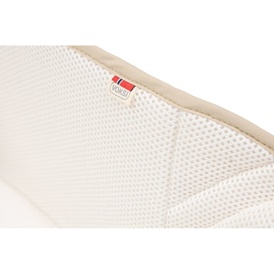 Voksi Carry Me har 3D mesh på hele indersiden for at sikre et åndbart, komfortabelt og sikkert sted for din baby. Der medfølger et enkelt, vaskbart underlag i økologisk bomuld med 3D mesh, som gør det endnu mere behageligt for din baby. Ydersiden er lavet af genanvendt polyester og bunden har en beskyttende overflade, der kan tørres af, for at holde den ren i hverdagen. En indvendig fiberplade i polyester gør produktet solidt.