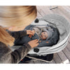Den unikke udformning af rygåbningen gør, at køreposen nemt kan monteres og bruges i vogne med forskellige seler. Voksi-posen er udstyret med skridsikkert materiale i ryggen, som betyder, at den holder sig på plads i vognen uden at skride. Der medfølger en forlængerdel, som nemt kan monteres på vognposen, når barnet vokser sig længere og har brug for mere plads. Når dit barn er lille og ikke fylder køreposen ud, kan du folde et tæppe eller den dunfyldte forlængerdel og lægge den i fodenden af posen for at sikre ekstra varme og komfort. Snoren rundt i hætten kan justeres efter vejrforhold og hvad barnet foretrækker. Der medfølger et blødt underlag til hovedet, som både giver ekstra komfort for barnet og beskytter stoffet under hovedet. En lynlås midt for giver let adgang til barnet, og den brede klap kan bruges til at stramme posen lidt ekstra rundt om barnet. Der er en lille integreret lomme ved siden af lynlåsen, hvor man blandt andet kan have en ekstra sut.
