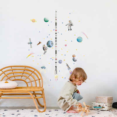 Wallstickerens raket kan måle dit barn op til 120 cm. En rigtig fin og dekorativ vægudsmykning der følger dit barns udvikling.