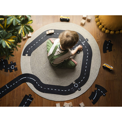 Fleksibel bilbane fra Waytoplay til børn som elsker leg med biler. Sættet indeholder 24 fleksible og slidstærke vejelementer i gummi, som kan klikkes sammen til en sej bilbane. Sættet består både af sving, lige baner, fodgænger felt og og vejbaner med hajtænder.