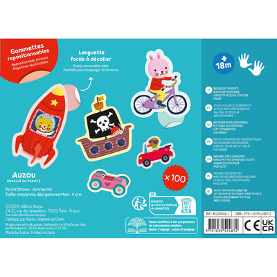 100 aftagelige klistermærker med alverdens transportmidler er perfekte til at fremme børns kreativitet. Klistermærkerne kan bruges fra en tidlig alder, da det er let at pille dem af den beskyttende bagside. Kan tages af igen og flyttes rundt. Leveres i en praktisk opbevaringspung med velcrolukning.
