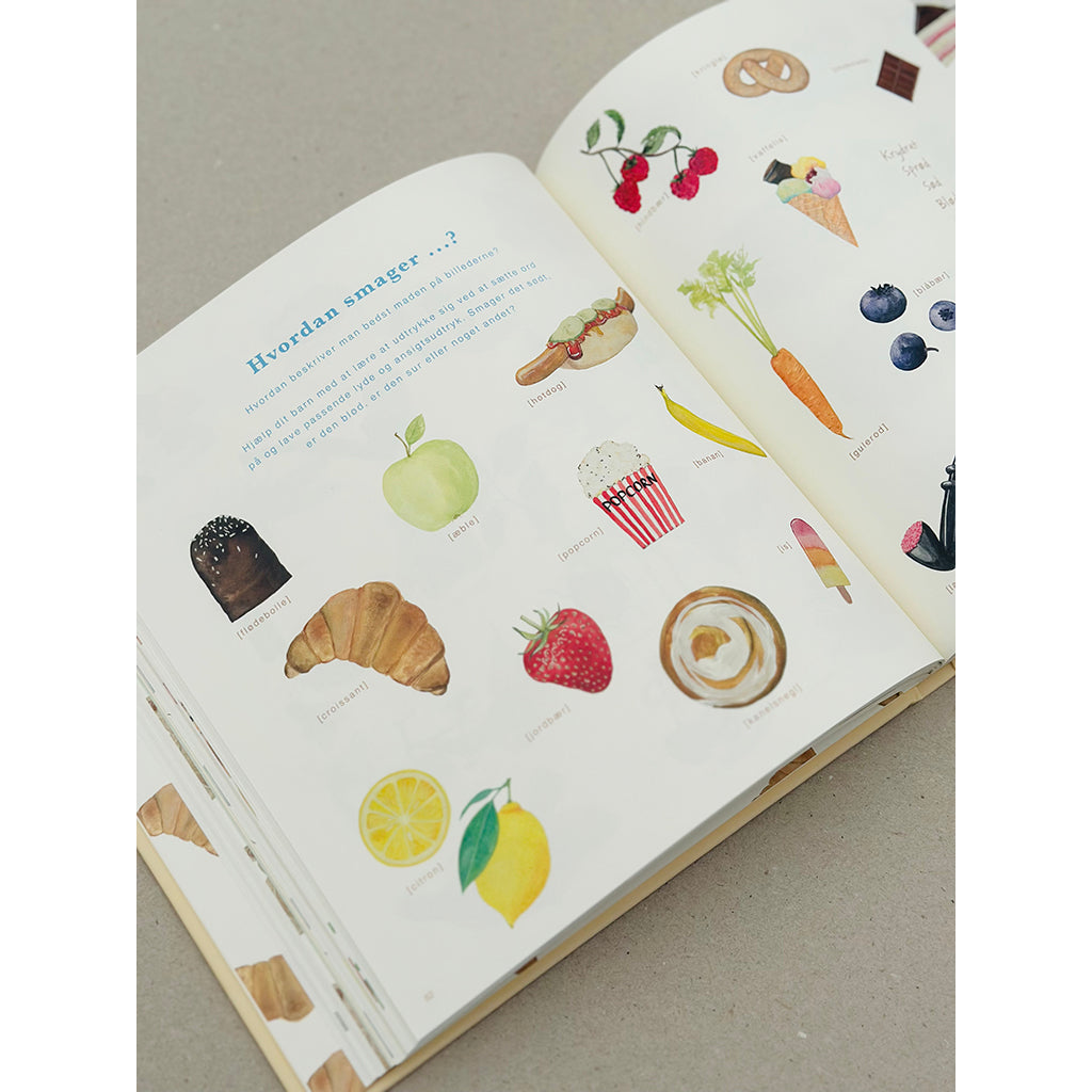 Bogen indeholder 132 blanke sider i kraftig, cremefarvet kvalitet med pastelfarvede illustrationer. Grafisk tryk og illustration af Annemette Voss Fridthjof.