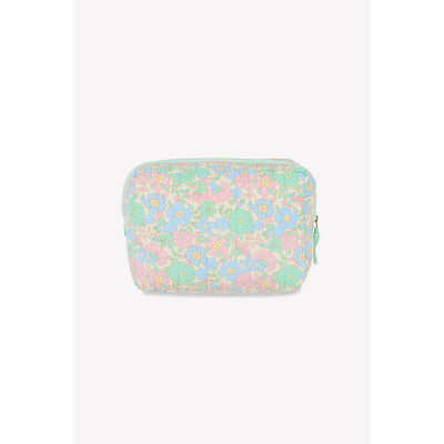 Flot stor toilettaske fra Bonton med lynlås. Måler 30 x 10 x 19 cm er fremstillet i 100% bomuld. Toilettasken har praktisk strop i den ene ende samt et stort rum med 4 lommer indvendig.