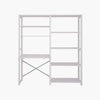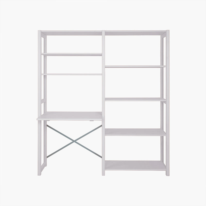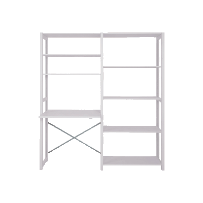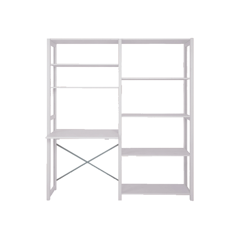 Modelfoto viser reol i højde på 179 cm og dybde 40 cm - bemærk at skrivebordspladen er 60 cm i dybden. Reolen leveres usamlet og som fladpakket.
