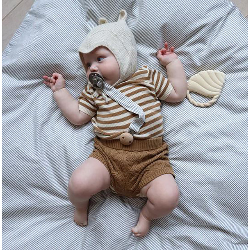Praktisk suttekæde fra Cam Cam med træ/metal-clips, så den kan fastgøres i barnets tøj. Suttesnoren er fremstillet af GOTS-certificeret økologisk bomuld med printet classic stripes blue. Klipsen kan nemt sættes fast på dit barns tøj eller savlesmæk, så sutten forbliver ren og ikke falder på gulvet. Oplagt gaveidé til babyshower og fødselsgaver.