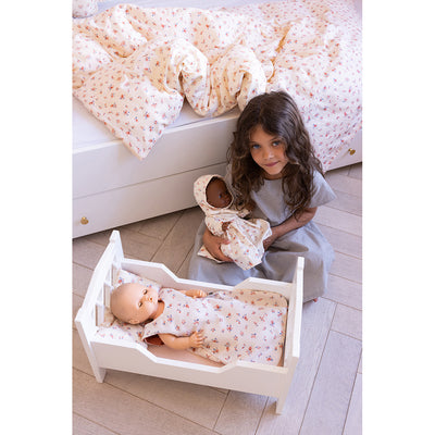 Skønt dukkesengetøj fra Cam Cam i økologisk kvalitet med de fineste detaljer. Dette sæt indeholder en dukkedyne og en pude, begge med økologisk fyld. Små sløjfer er syet på i bunden som ekstra detaljer. Betrækkene kan lynes af og vaskes separat. Måler 33 x 40 x 1,5 cm. Passer til Cam Cam dukkeseng.
