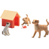 3 søde hunde og et hundehus, som passer til dukkehusene "Mon Petit Home" fra Djeco. Sødt tilbehør til rolleleg med dukkehuse. Fra 4 år.