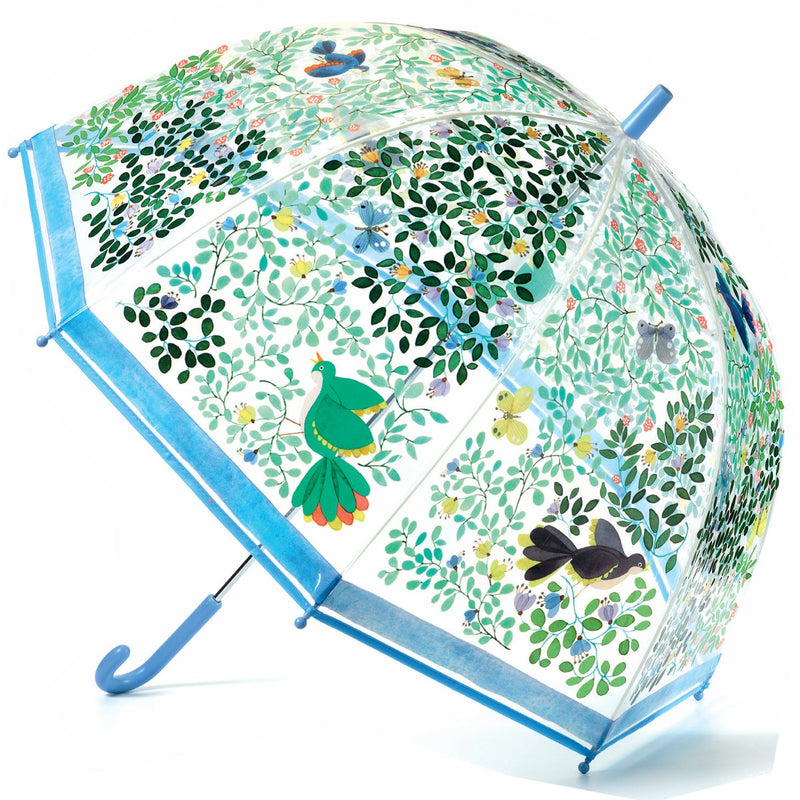 Nu behøver de voksne ikke kigge misundeligt efter børnenes paraplyer mere, for nu kan de få deres egen flotte Djeco Paraply. Paraplyen er gennemsigtig og med flotte fuglemotiver.