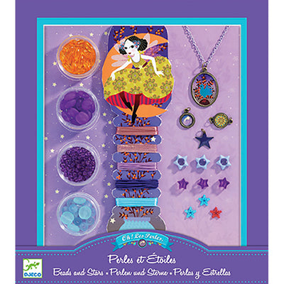 Æske fyldt med fine plastperler og vedhæng, så man selv kan lave smykker i mange forskellige farver og udtryk fra Djeco. Kun fantasien sætter grænser for hvad der kan laves af fine halskæder og armbånd. En god gaveidé til kreative børn fra 7 år.