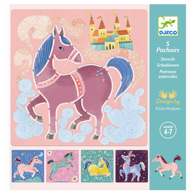 Lær at tegne flotte heste med dette skabelonsæt fra Djeco. Du får 5 forskellige tegneskabeloner med fine motiver, som barnet kan tegne efter og efterfølgende farvelægge. Et stort hit til de kreative børn, og en fin idé til kalendergave.