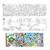Fold malebogen ud til et 1 meter bredt kunstværk med en forside til farelægning og en bagside med et ekstra illustreret landskab til farvelægning og dekoration med de 50 medfølgende og skinnende klistermærker. Illustreret af Linda Bleck.