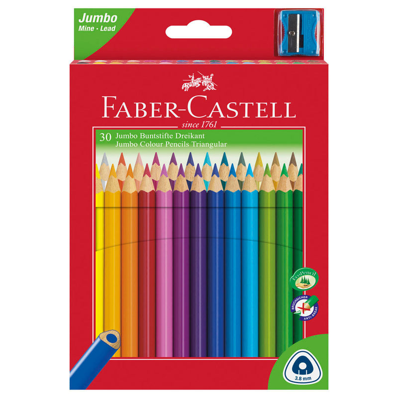 Faber-Castell, 30 stk trekantet Jumbo farveblyanter