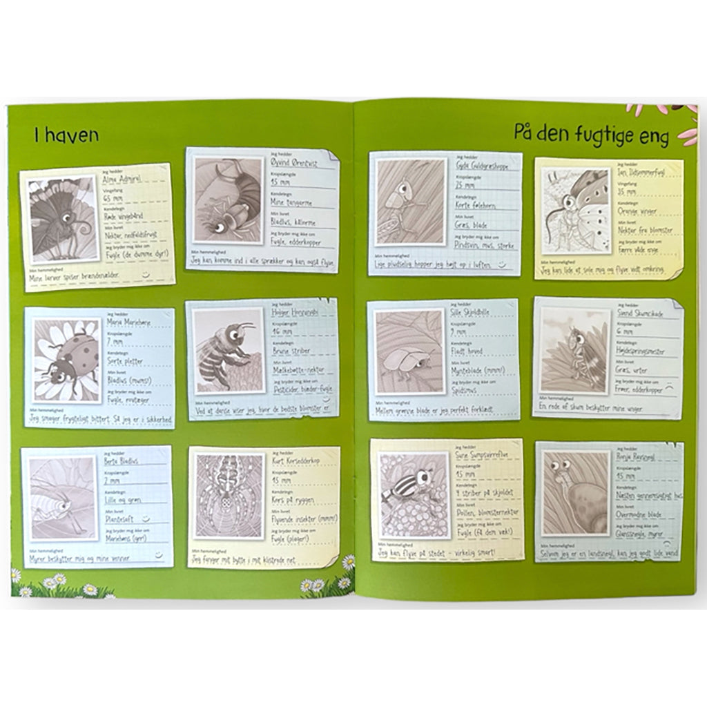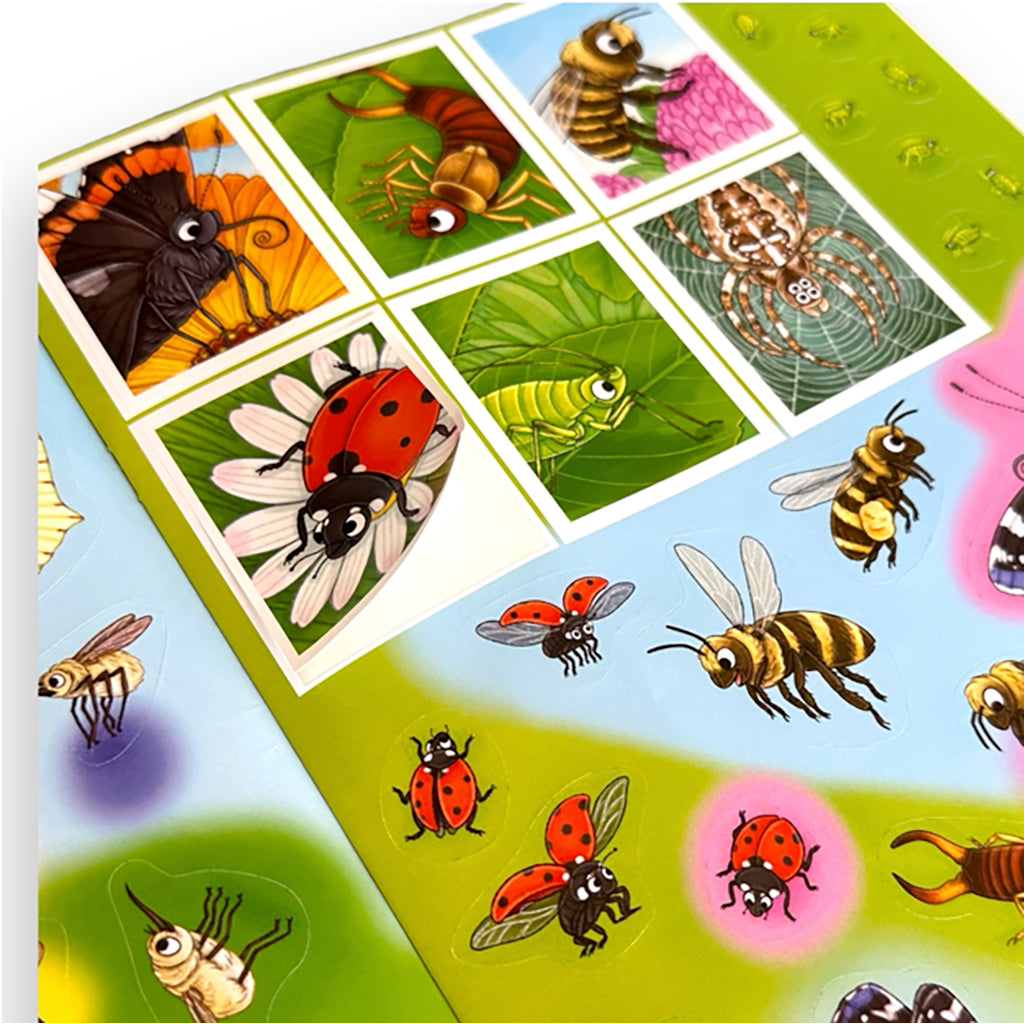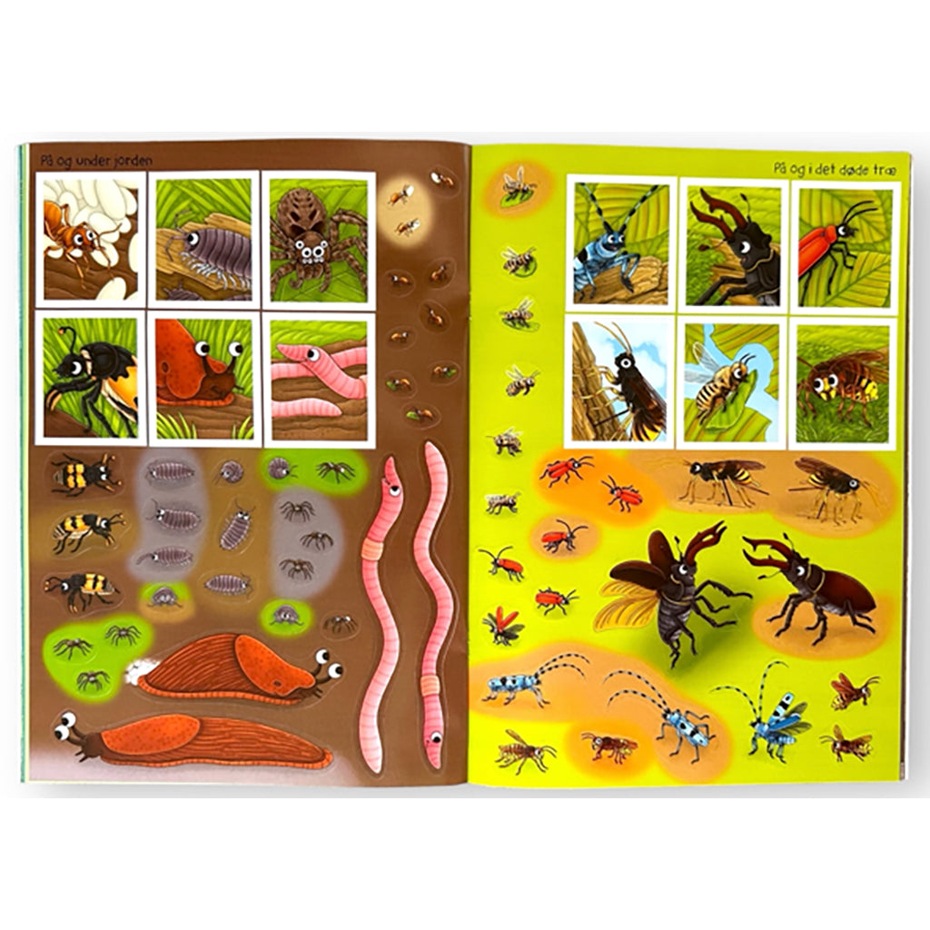 Aktivitetsbog med 8 sider klistermærker. Indsæt over 140 klistermærker på de 8 flotte landskaber og 44 insektkort – og lær alt om insekternes hemmelighedsfulde og spændende liv! Fra 3 år.