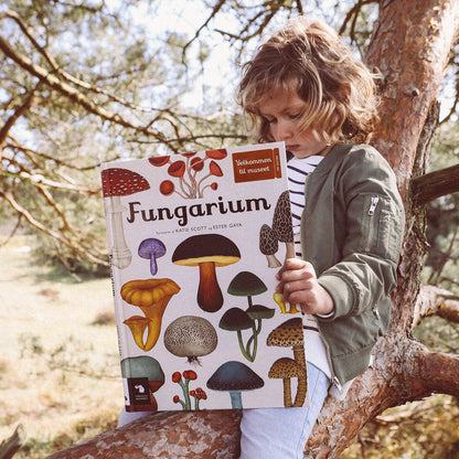 Fungarium er en helt fantastisk faktabog og en lille verden i sig selv. Bogen er fra Forlaget Mammut, og er med imponerende illustrationer og livlig og lærerig tekst, som alle der fascineres af svampe, vil kunne fordybe sig i. Med denne smukke bog er det muligt at dykke ned i en verden af viden, og blive klog på alverdens svampe.