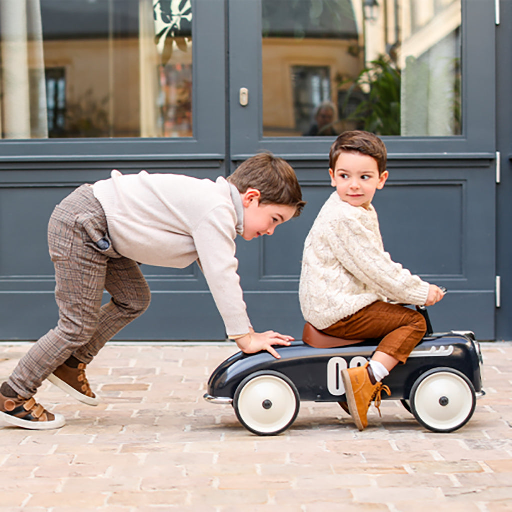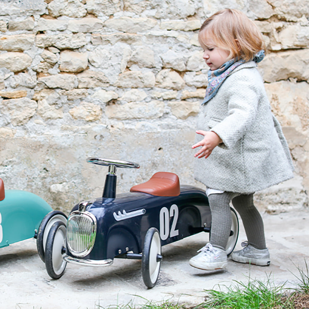 Super flot gåbil i metal, som uden tvivl vil vække jubel både hos junior og forældre. Gåbilen er i mørkeblå farve med lyse hjul og sæde i læder-look. Bilen suser afsted ved hjælp af egen benkraft.... Bilen er i metal og selv sæde og rat er i hård plastik. Baghera er et klassisk fransk mærke, der er kendt for deres fine design samt gode kvalitet.