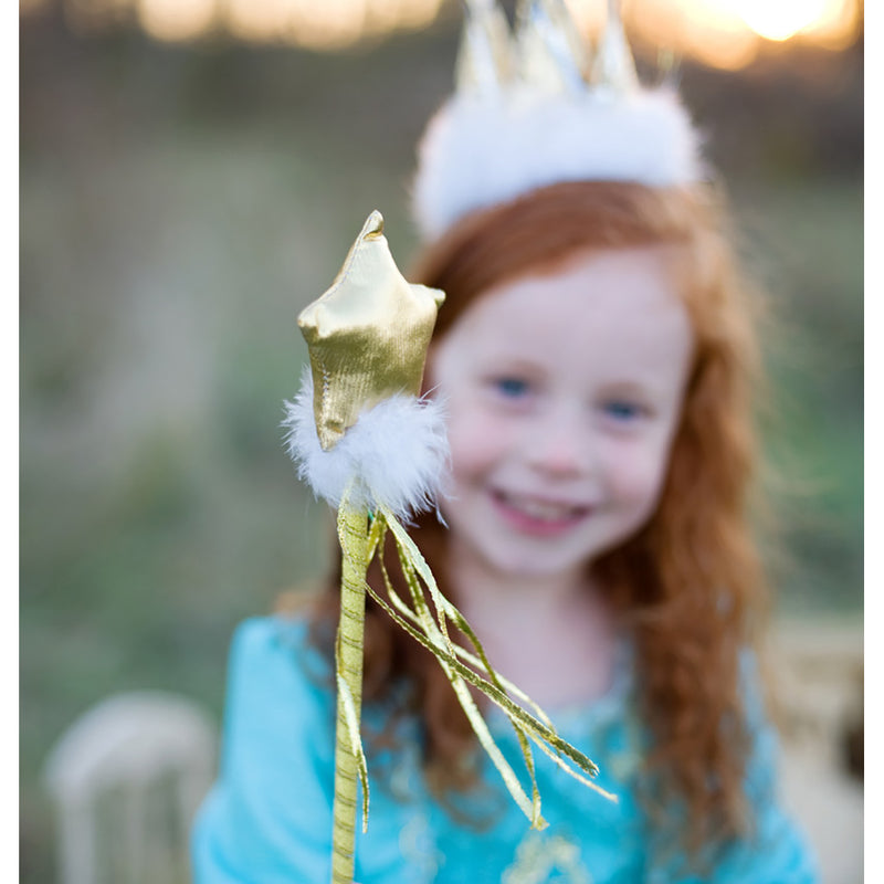 Spred stjernestøv med denne fine tryllestav, hvor stjernen er polstret med det fineste skinnende stof, samt silkebånd og fjer. Rigtig flot tilbehør til eventyrlig leg og til udklædning som fe eller prinsesse. Fra 3 år.