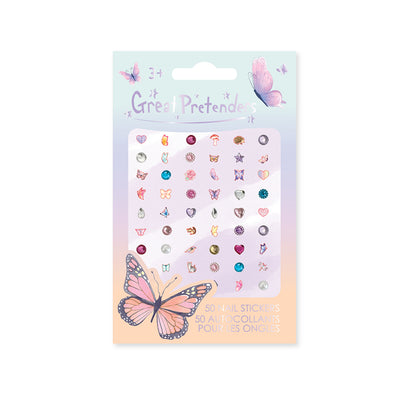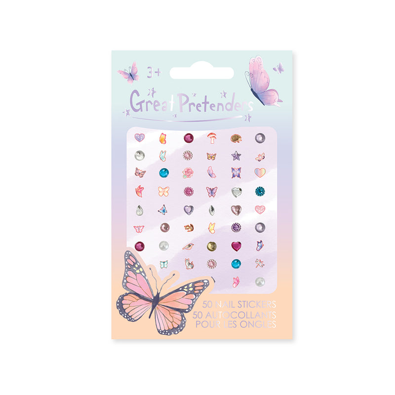 Sjove små klistermærker fra Great Pretenders, som kan anvendes som dekoration på negle i leg og ved udklædning. Indeholder 50 små motiver. Fra 3 år. Sjov kalendergaveidé.