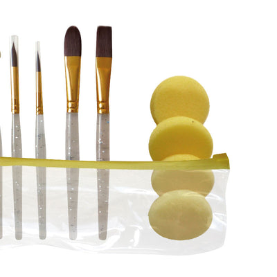 Flot penselssæt fra Grim Tout. Penselssættet er perfekt til ansigtsmaling. Indeholder 6 pensler i forskellige størrelse og 4 skumsvampe. Leveres i praktisk taske med lynlås. 10 dele.